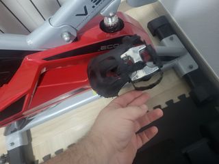 Pedales estáticos para bicicleta, ideales para ejercitarse en casa. - Pantalla digital con información de entrenamiento. - Botón de control naranja. - Tiene una pequeña rotura en uno de los plásticos pero no impide en absoluto su uso (ver foto)