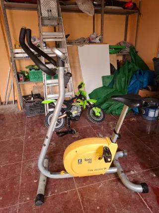 Bicicleta estática de la marca Tonic, modelo 112. - Color amarillo. - Pedales con agarre. - Manillar ergonómico. Muy poco uso,pero va perfecta