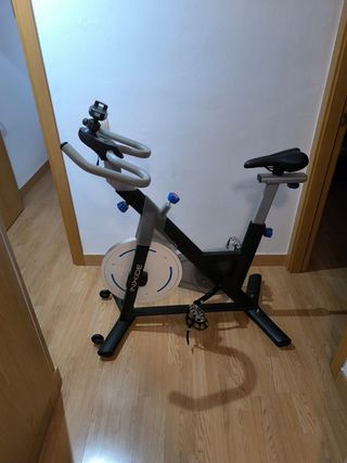 Esta perfecta sin apenas uso, con manual de instrucciones, en las fotos estan todas las características originales. Niveles de resistencia 22, velocidades 24. Conectividad Bluetooth. Mide calorías y ritmo cardíaco. Con aire acondicionado en la bici. Instalando app en tablet o móvil de la marca tiene rutas y más funcionalidades. Preguntar sin compromiso.