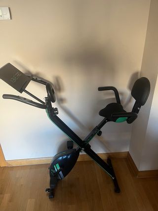 Bicicleta estática de la marca Cecotec, modelo XBIKE PRO. Diseñada para entrenamientos en casa. - Estructura plegable para fácil almacenamiento. - Asiento y manillar ajustables. - Pedales con correas de sujeción. Prácticamente nueva, la compré y no la puedo usar por problemas de espalda. Imprescindible recoger en Cuenca