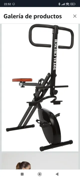 Equipo de fitness Total Crunch, también funciona como bicicleta estática. Ideal para ejercitar todo el cuerpo. - Estructura metálica negra. - Asiento acolchado. - Pedales con correas. - Prácticamente no sé usó.