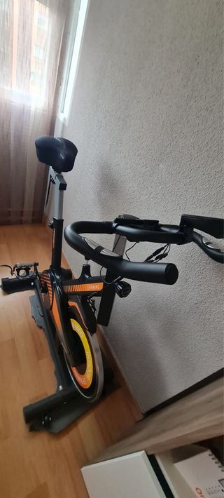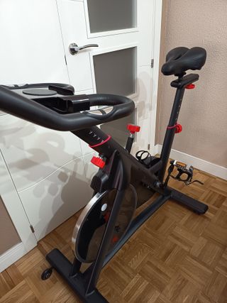 Bicicleta indoor profesional marca Cecotec. • Pulsómetro que muestra la frecuencia cardíaca durante el entrenamiento. • Pantalla LCD que muestra el tiempo, la velocidad, las calorías consumidas, la distancia recorrida y las pulsaciones. Función SCAN integrada. • Volante de inercia de 16 Kg. La mejor transmisión: por correa. • Estabilizadores para acoplarse a cualquier superficie con pequeños desniveles. • Ergonomía avanzada para lograr una posición óptima de entrenamiento: manillar regulable en altura, sillín regulable horizontal y verticalmente. Usada un par de veces. Precio nueva en la web de Cecocet 292€
