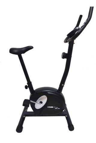 Bicicleta estática compacta, ideal para mantenerte activo en casa. - Diseño moderno en color negro. - Pantalla digital para seguimiento de ejercicio. - Pedales con correas ajustables.