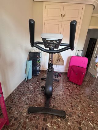 Bicicleta estática Essential Q4 en buen estado. - Diseño moderno y compacto. - Manillar ergonómico. - Sillín acolchado. - Pantalla digital.