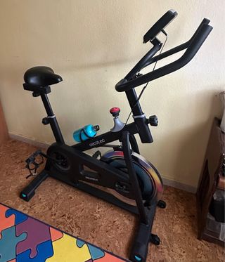 Modelo: Domyos Essential 2 con volante de inercia 3 kg. Precio en tienda: 149,99€ Pantalla LCD: tiempo, velocidad, distancia, calorías. Asiento ajustable en altura y sillín acolchado. Manillar ergonómico ajustable. Pedales con correas. Peso máximo soportado: 110 kg. Estable y compacta, fácil de mover. Muy buen estado, a penas usada. Precio negociable.💲 Envio rápido en menos de 24h. ✅📩