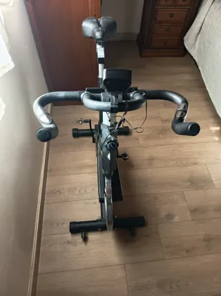 Bicicleta estática para ejercicio en casa. Apenas usada. Con respaldo. Solo en mano. - Diseño compacto. - Pedales con agarre. - Manillar acolchado.
