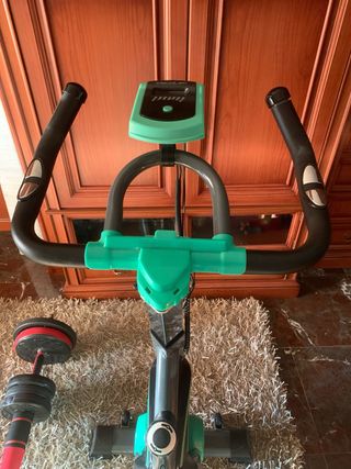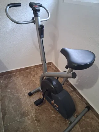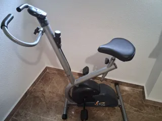 Bicicleta estática bastante usada. -Pedales reemplazados (mejores que de serie) de metal. -Altura del sillín ajustable. -Display funcional (a pilas), aunque el botón que hace cambiar los datos está roto, pero se muestran rotando por tiempo. -Dureza de los pedales ajustable.