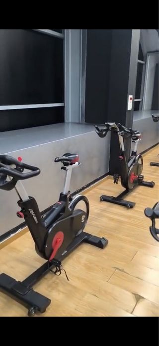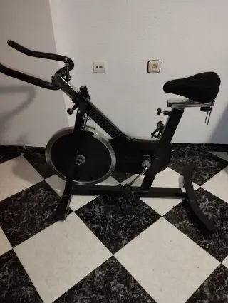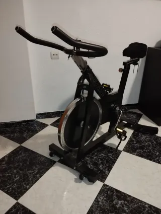 Bicicleta spinning indoor B-PRO. Con señales de uso, pero perfectamente funcional, funciona todo correctamente. Sillín y manillar regulables tanto en vertical como horizontal, pantalla de datos con distancia, tiempo, calorías, velocidad.... Ocupa poco espacio y se puede mover de sitio gracias a las dos ruedas delanteras, ideal para hacer ejercicio en casa. Se vende porque porque no se usa desde hace tiempo.