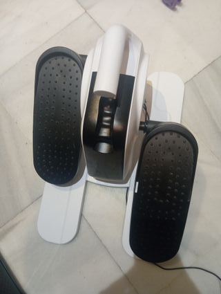 Bicicleta elíptica de diseño compacto, ideal para ejercitarse en casa. - Pedales con superficie antideslizante. - Estructura blanca y negra. - Asa superior para mayor estabilidad.