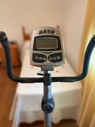 Sistema de pedaleo fluido mediante transmisión por correa. Security brake: entrena con total seguridad gracias a su frenado de emergencia. Sillín ergonómico con acolchado y manillar ajustables para tus entrenamientos de largo recorrido. Volante de inercia de 10 kg Resistencia variable para simular un entrenamiento en diferentes entornos. Incluye soporte para dispositivos, smartphone, tablet, libro, etc. Pantalla LCD con panel de control: muestra velocidad, tiempo, distancia, calorías consumidas y frecuencia cardíaca. La función Scan controla el entrenamiento en cada momento. Precio negociable.