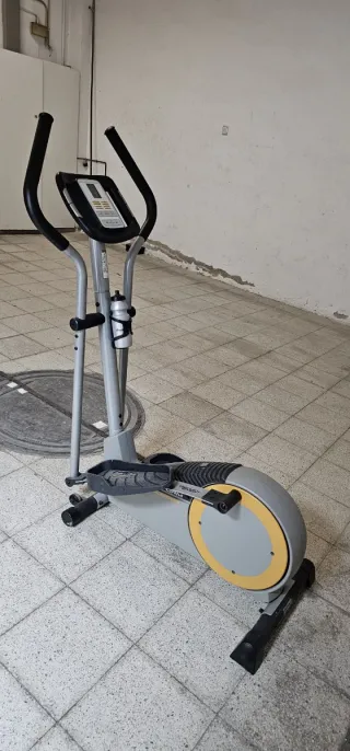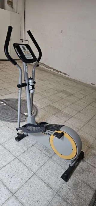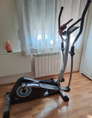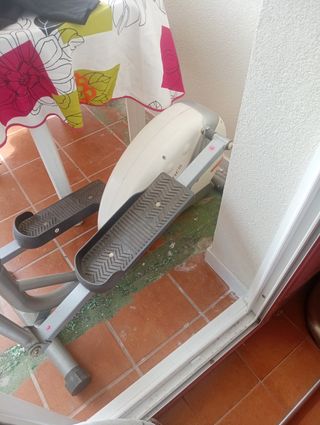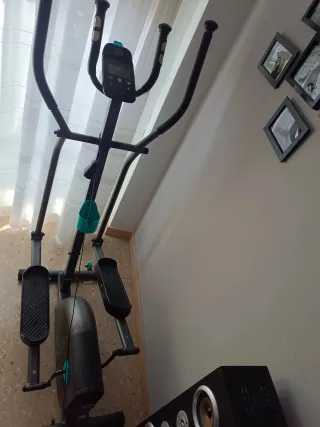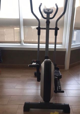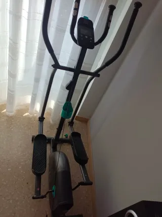 Elíptica en buen estado, ideal para hacer ejercicio en casa. - Resistencia regulable. - Diseño compacto y ligero. - Pedales antideslizantes. con ruedas para fàcil desplazamiento, resistencia variable para adaptar entrenamiento