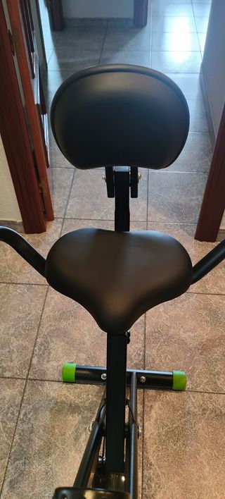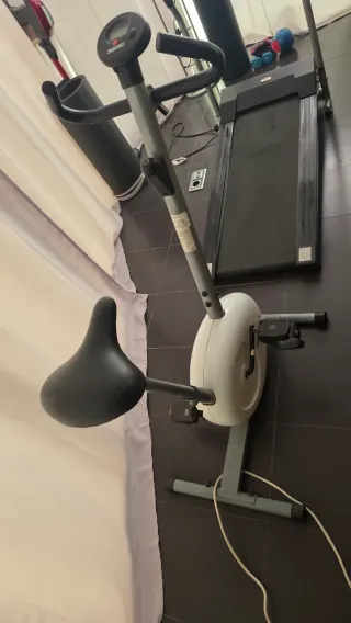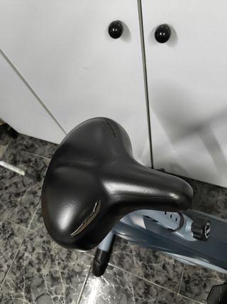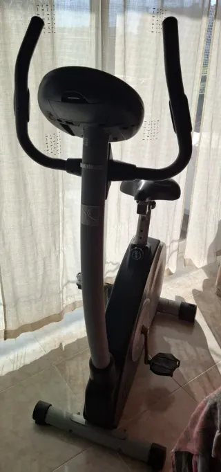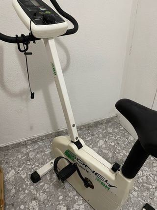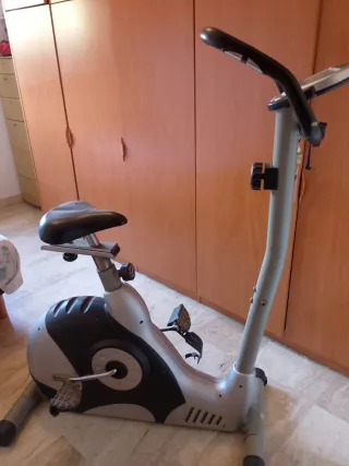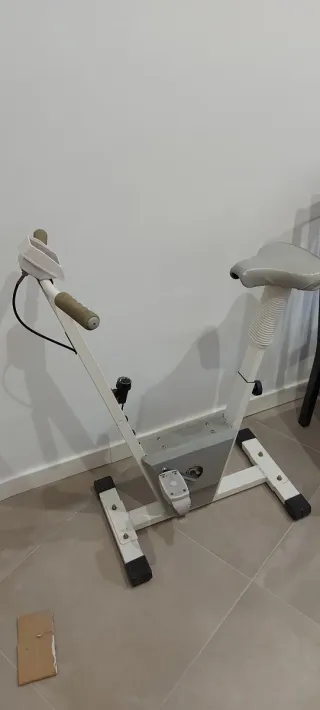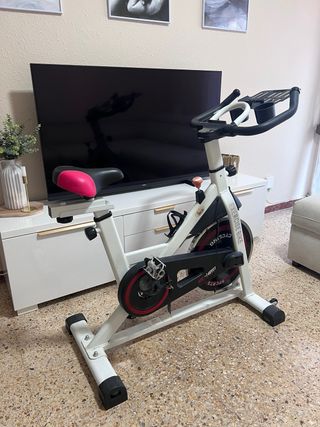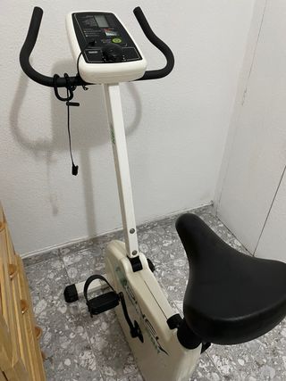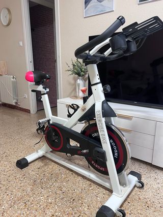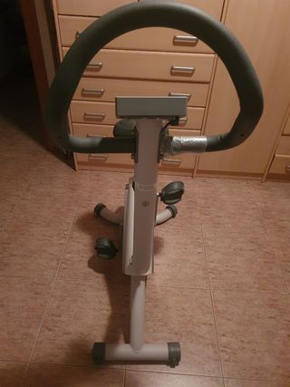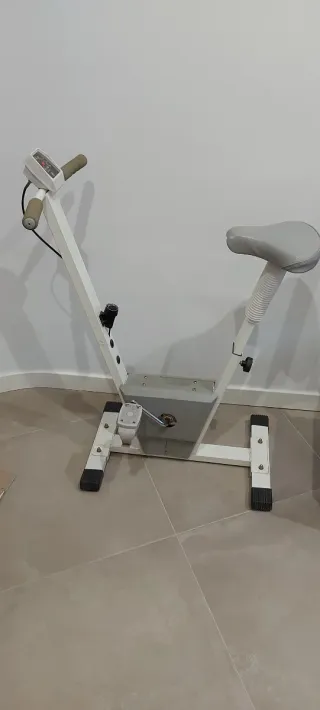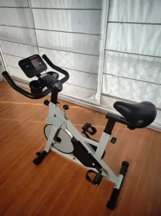 Bicicleta estática para hacer ejercicio en casa. Está en muy buen estado y apenas tiene uso. - Perfecta para mantenerse en forma. - Diseño moderno y elegante en color blanco. - Fácil de usar y transportar gracias a sus ruedas. - Asiento cómodo y ajustable.