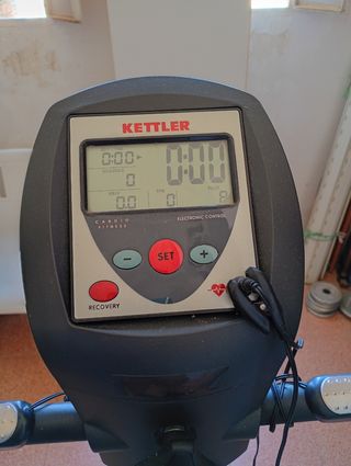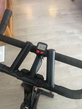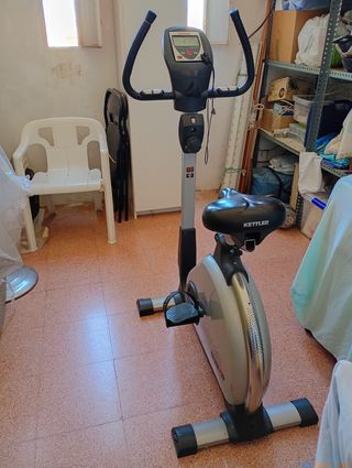 Bicicleta de spinning Kettler Race en buen estado. - Diseño deportivo y robusto. - Manillar ajustable. - Sillín cómodo y regulable. - Pedales con agarre. - Rueda de inercia para un pedaleo suave. La pantalla no funciona, seguramente son pilas