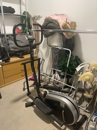 Bicicleta elíptica en buen estado, ideal para hacer ejercicio en casa. - Marca: (No especificada en la imagen) - Diseño compacto y ligero. - Pedales antideslizantes.