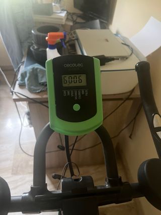 Bicicleta estática de spinning Cecotec prácticamente nueva. Ideal para hacer ejercicio en casa. Viene con su alfombra - Marca: Cecotec - Modelo: Extreme25 - Monitor digital que muestra el tiempo, velocidad, calorías y pulsaciones. - Resistencia regulable - Sillín y manillar ajustables precio negociable, estado en perfecto estado de vende por no usar y por falta de espacio. Tiene muy poco uso.