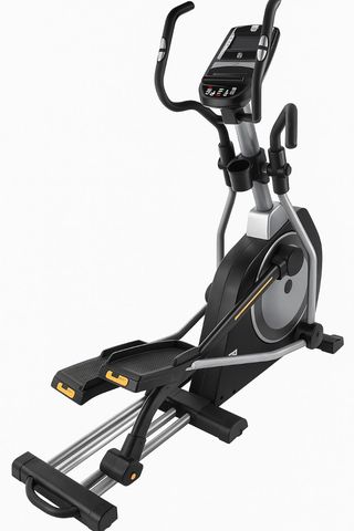 Bicicleta elíptica para entrenamientos en casa. Diseñada para ofrecer una rutina cardiovascular completa. - Estructura metálica gris. - Pedales amplios y cómodos. - Manillar con agarres negros. - Soporte para botella de agua.