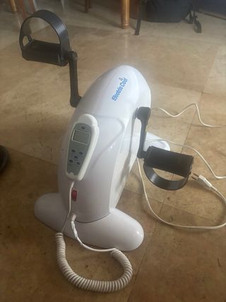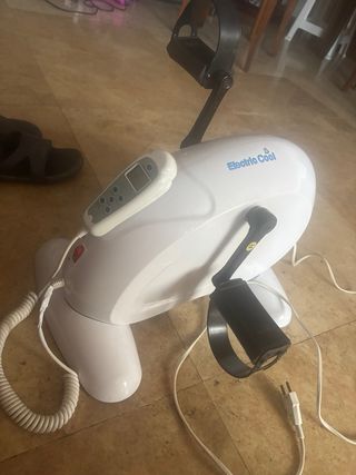 Pedaleador eléctrico para ejercitar piernas y brazos. - Diseño compacto y portátil. - Pantalla digital con información del ejercicio. - Cable de alimentación incluido.
