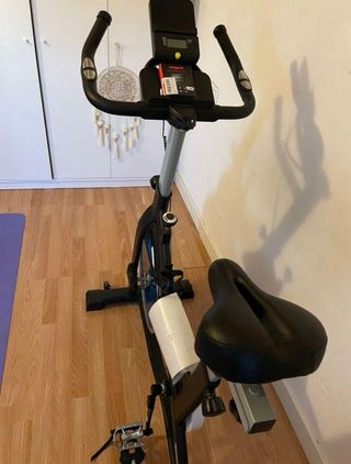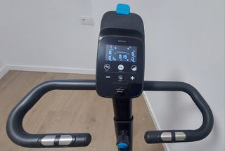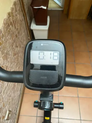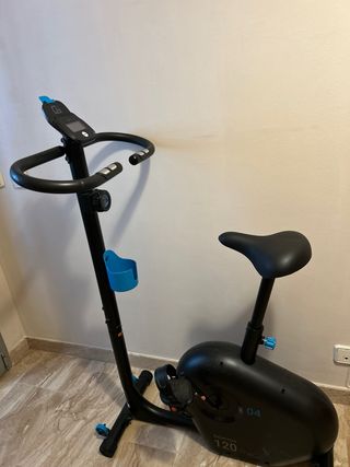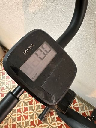 Bicicleta estática Domyos 120 de Decathlon. - Sillín acolchado. - Pedales con correas. - Pantalla digital.