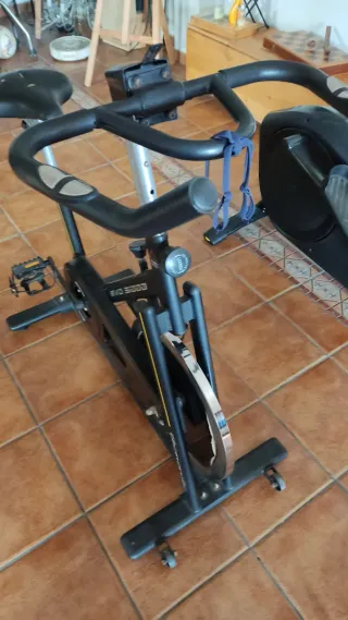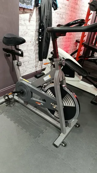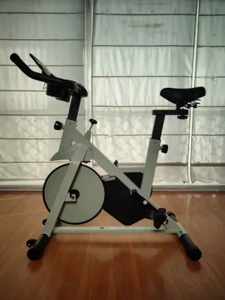 Bicicleta de spinning en buen estado, ideal para entrenamientos en casa. - Diseño ergonómico. - Asiento acolchado. - Pedales con agarre.