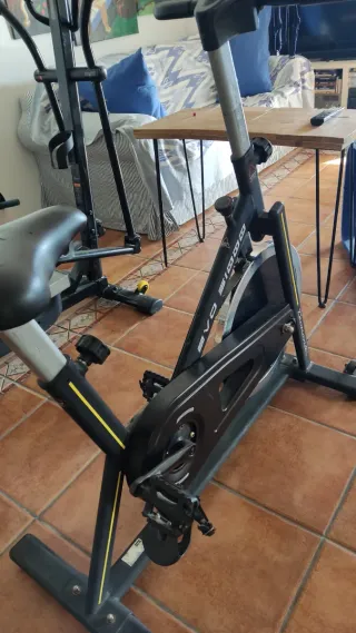 Bicicleta estática spinning en buen estado. Ideal para hacer ejercicio en casa. - Resistencia regulable. - Asiento cómodo y ajustable. TIENE ALGUNA SEÑAL DE DESGASTE POCO USADA.