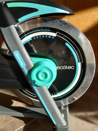 Bicicleta estática Cecotec EXTREME20 en perfecto estado, casi sin uso. - Diseño moderno en gris, negro y turquesa. - Volante de inercia de 20 kg. - Sillín ergonómico y ajustable. - Manillar regulable en altura. - Pedales con puntera.