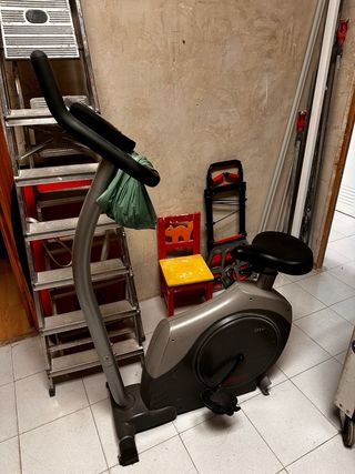 Bici estática en buen estado, ideal para entrenar en casa sin ocupar mucho espacio. Dispone de resistencia regulable, pantalla digital con tiempo, distancia, velocidad y calorías, y asiento ajustable para mayor comodidad. 🧽 Revisión hecha y funciona perfectamente. 💪 Perfecta para cardio, mantenerse en forma o rehabilitación ligera. 📦 Estado: usada, pero como nueva y lista para usar.