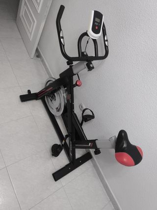 bicicleta estatica como nueva me apunte al gimnasio y por eso la vendo, la habre usado 3 veces. es plegable, asi que guardarla es facil. Plegable con Volante de Inercia de 2,5 Kg y Sistema Silence Fit, Ergonómica, Manillar y Sillín Regulable, Pulsómetro, Pantalla LCD, Ruedas, Peso máximo 100 Kg