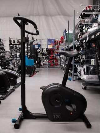 Bicicleta estática de la marca DOMYOS, modelo VM25. Ideal para entrenamientos en casa. - Diseño compacto y funcional. - Asiento ajustable en altura. - Manillar ergonómico.