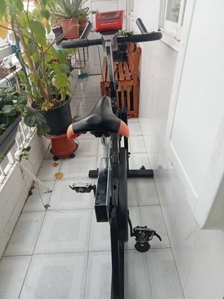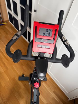 Bicicleta de spinning FITTER 2000 en buen estado. - Diseño robusto y estable. - Ruedas para facilitar el transporte. - Soporte para botella de agua. - La pantalla no funciona.