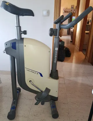 Bicicleta estática Domyos VM440 en buen estado. - Diseño compacto y funcional. - Asiento ajustable. - Manillar ergonómico. - Pantalla digital para seguimiento de ejercicio. El manillar tiene algo pelada la espuma de alguna vez q se desmonto pero por lo demás el estado es muy bueno . Escucho ofertas razonables ya q el precio ya está bastante ajustado pa una bicicleta de esta calidad .