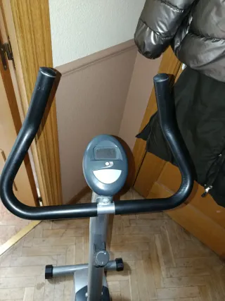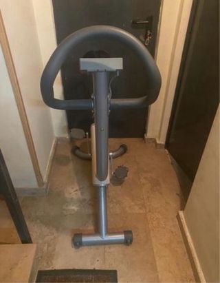 Bicicleta estática en buen estado, ideal para hacer ejercicio en casa. - Resistencia regulable. - Monitor digital que muestra el tiempo, la distancia, las calorías quemadas y la frecuencia cardíaca. - Asiento cómodo y ajustable. - Pedales antideslizantes. - Diseño compacto y fácil de guardar.