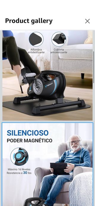 Mini bicicleta estática MERACH, ideal para ejercitarse en casa. Cuenta con alfombra antideslizante y cubierta antideslizante para mayor estabilidad. - Silencioso. - Poder magnético. - Máximo 16 niveles de resistencia. - Resistencia de hasta 30 lbs.
