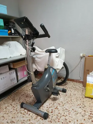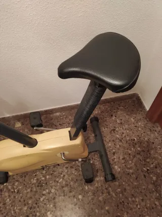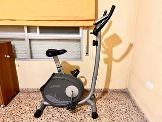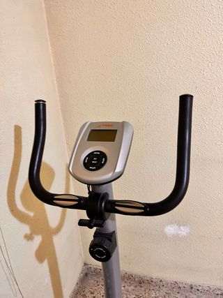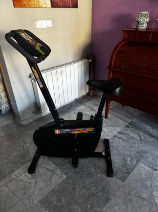 Bicicleta estática en buen estado, ideal para entrenar en casa. Su diseño es compacto y funcional. - Pantalla digital con información de entrenamiento. - Manillar ergonómico. - Sillín ajustable en altura. - Pedales con correas de sujeción.