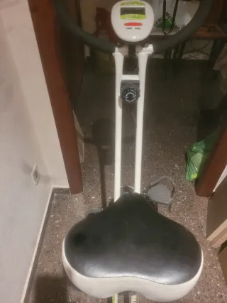 Bicicleta estática tipo elíptica, ideal para entrenamientos cardiovasculares en casa. Su diseño permite un movimiento suave y de bajo impacto. - Estructura metálica resistente. - Pedales amplios para mayor comodidad. - Manillar con agarres acolchados.