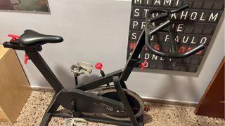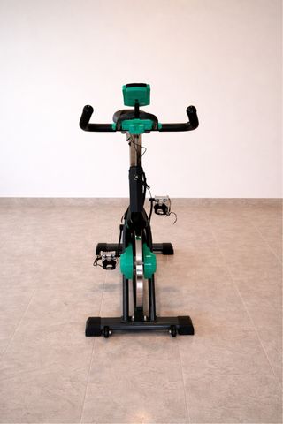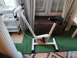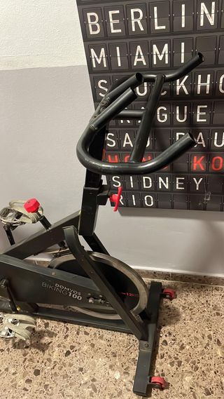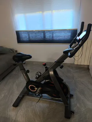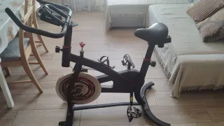 Bicicleta de spinning de la marca HE-KA, con una capacidad máxima de 150kg. (Precio de compra 300 €) - Diseño robusto y estable. - Asiento ajustable. - Manillar ergonómico. - Pedales con agarre. - Ruedas para fácil transporte.