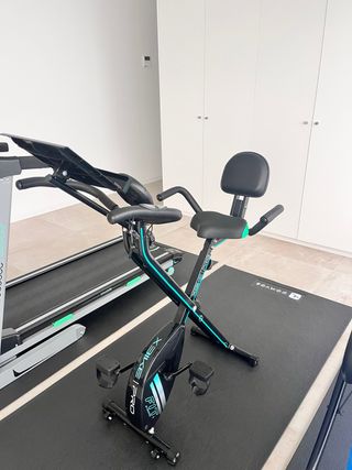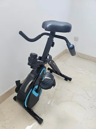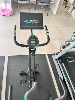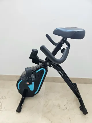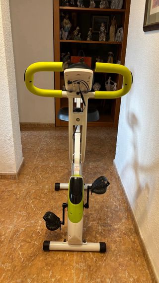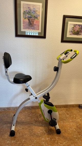 Bicicleta estática Cecotec, modelo X-Bike, plegable y en perfecto estado. - Diseño compacto y fácil de almacenar. - Pantalla digital con información de entrenamiento. - Asiento ergonómico y ajustable. - Pedales con correas de sujeción.