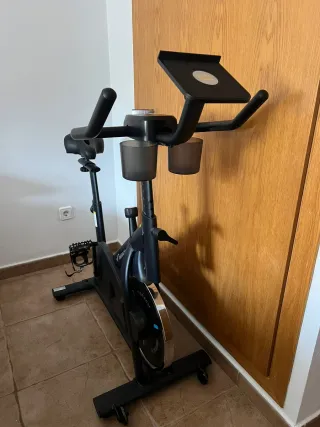 Bicicleta estática de la marca Merach, ideal para entrenamientos en casa. Su diseño moderno se adapta a cualquier espacio. - Manillar ajustable. - Sillín cómodo y regulable. - Portabidones integrados. - Soporte para tablet o móvil. *Usada menos de 5 veces.