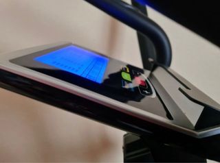 Bicicleta estática de spinning CADENZA Sirve para entrenar perfectamente porque no se ha utilizado mucho pero tiene varias cositas ya que tuvo que aguantar a un cachorro que la tomó con ella. La pantalla marcaba tiempo, ritmo… pero el perro mordió el cable. No sé si se puede arreglar pero la tapa de las pilas desapareció. Lo bueno es que tiene el hueco justo para colocar el móvil o la tablet. Tiene dos ruedas para transportarla ya que estas bicis pesan bastante pero las tuve que quitar porque también las mordió (ahora las pongo solo cuando tengo que moverla). Los pedales están bien (faltan las correas de ajuste)