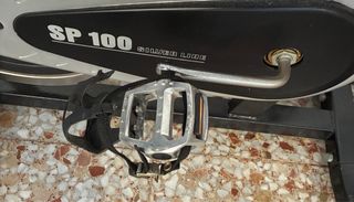 Bicicleta de spinning modelo SP 100 de la línea Silver Line. Ideal para entrenamientos en casa. -No tiene marcador. - Pedales nuevos. - Pedales con correas de sujeción. - Estructura robusta. - Engrasada cada 3 meses funciona muy bien.