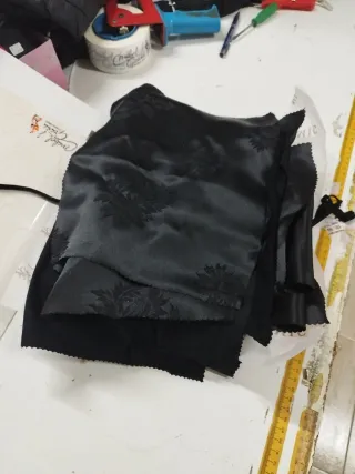 Conjunto de retales de tela de raso negro con un bonito estampado floral. - Ideal para proyectos de manualidades y costura. - Tejido suave y brillante.