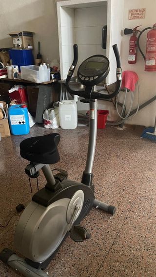 Bicicleta estática para ejercicio en casa. Su diseño es moderno y funcional. - Manillar ergonómico. - Sillín acolchado. - Pantalla digital. No tengo datos ni se funciones. No es mía, la vendo por hacer el favor al dueño.