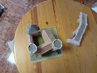 Maqueta detallada de un castillo medieval, ideal para coleccionistas o aficionados a la historia. - Incluye torreones y murallas. - Base con terreno ajardinado.