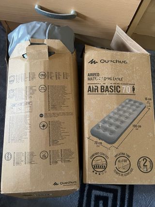 Colchón inflable Quechua con bomba de aire Intex Quick Fill. - Incluye bomba de aire. - Ideal para camping o uso ocasional. - Medidas aproximadas del colchón: 190 cm x 70 cm. Uno esta usado una vez y el otro nunca Para incluir el inflador manual son 28€