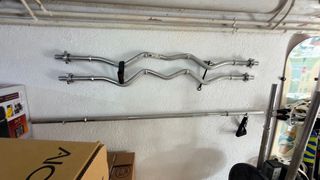 Equipo de gimnasio para entrenar en casa. Idealmente vendo junto. El precio es por todo junto; si quieres algún kit más pequeño lo hablamos - Rack de sentadillas con soportes ajustables. - Barras paralelas - Banco reclinable - Barra Z (1 unidad) - Soporte vertical de hierro para discos - Discos de pesas de diferentes tamaños: - 4 discos 10kg - 2 discos 5kg - 8 discos 2kg - 12 discos 1kg - 1 Barra Olímpica - 4 Barras de mancuerna