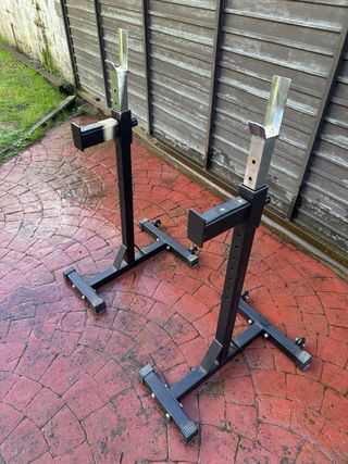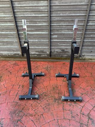 Rack para sentadillas y press de banca, ideal para entrenar en casa. Estructura metálica resistente. - Color negro. - Ajustable en altura.