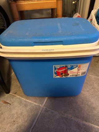 Nevera de playa de color azul, con un diseño práctico. - Tapa con relieves. - Cubeta interior blanca.