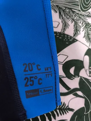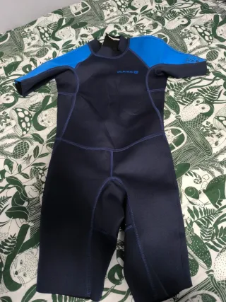 Neopreno corto de la marca Olaian, diseñado para niños. - Color azul y azul marino. - Manga corta. - Piernas cortas.