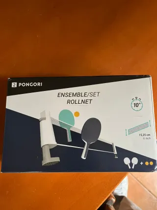 Set de ping pong PONGORI Rollnet, ideal para jugar en cualquier lugar. El paquete está sin abrir. - Incluye red, soportes y pelotas. - Diseño compacto y portátil.