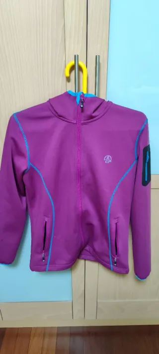 Forro polar Ternua de color morado con detalles en azul. - Capucha integrada. - Cremallera frontal. - Bolsillo en manga izquierda.