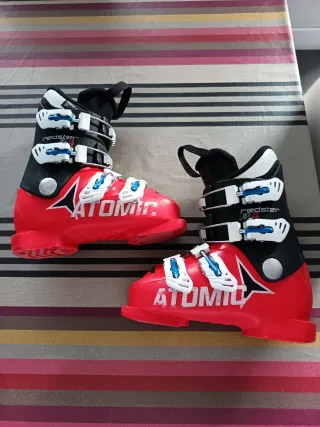 Botas de esquí Atomic en talla 21/21.5. En buen estado, con signos de uso. Ver fotos. - Color rojo brillante. - Cierres de hebilla metálica. - Interior negro.